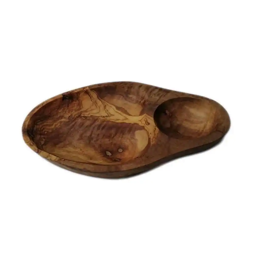Platou compartimentat din lemn de măslin natural, unicat. Platoul din lemn de măslin are două compartimente diferite ca dimensiuni.